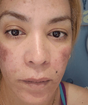 Most of the peeling has stopped, the client is very happy with the results. There is a a dramatic decrease in pigmentation. The new skin that grew in underneath is pink, healthy, and fresh.