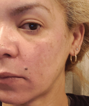 The client's skin is peeling and flaking. You may not touch your face during this! The only thing you may do is apply moisturizer and sunscreen. This is why I tell my clients that there may be some downtime with this peel.